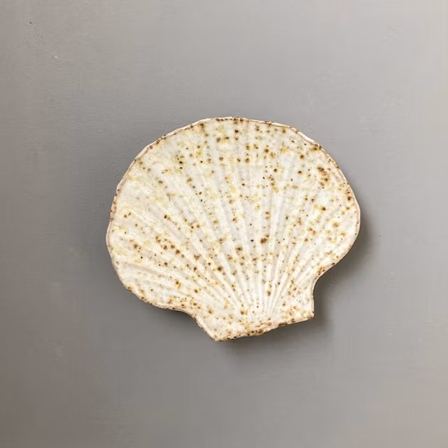 Snäckfat i grov stengodslera med lavafläckar.