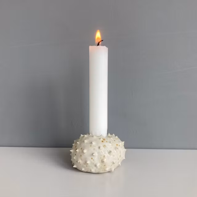 Ljusstake i stengodslera med lavafläckar.