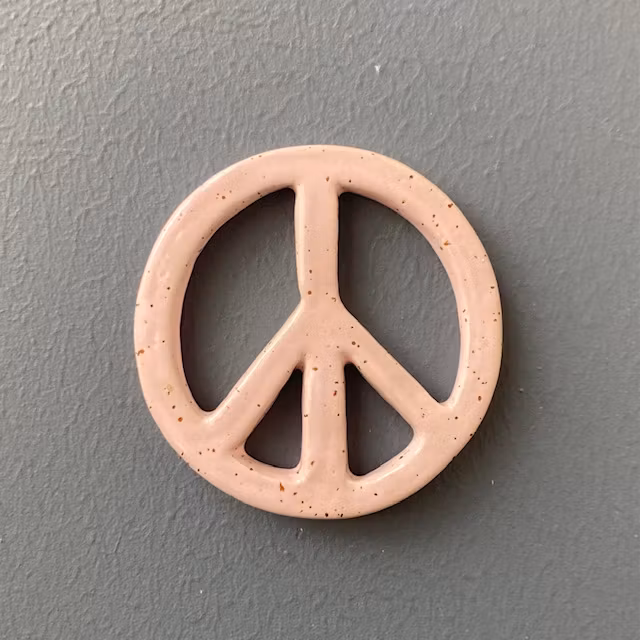 Peacemärke i stengodslera med lavafläckar.